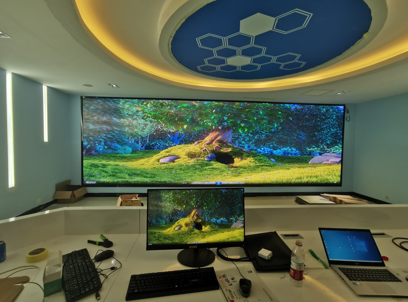 榮臻電子55寸3*8液晶拼接屏和P1.86小間距LED顯示屏項目進駐湖南某公司